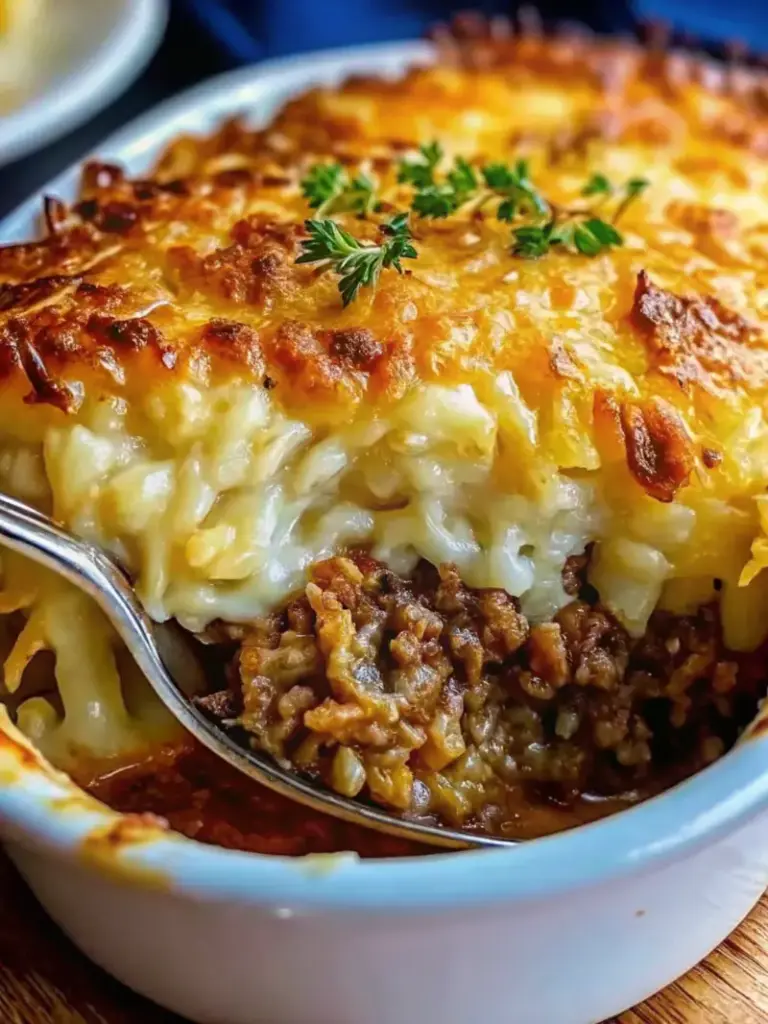 Add diced jalapeños or cayenne to the beef mix for heat. This personalizes the hearty onion-infused beef bake for spice lovers.