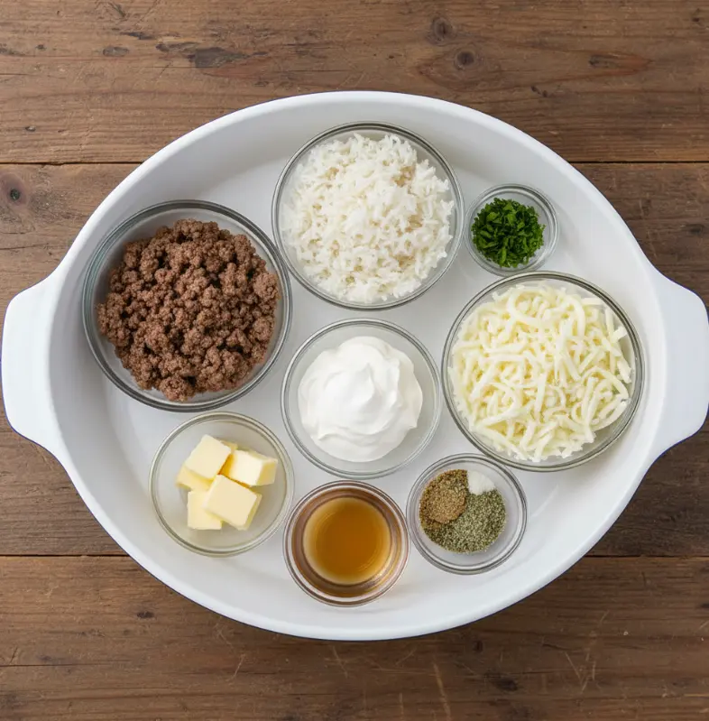 Gather these simple ingredients to whip up your French Onion Ground Beef and Rice Casserole—think of it as a flavor-packed hug in casserole form. The combination creates a creamy, cheesy texture with hints of oniony depth that will have your kitchen smelling like a cozy French bistro. Here’s what you’ll need for about 6 servings:
