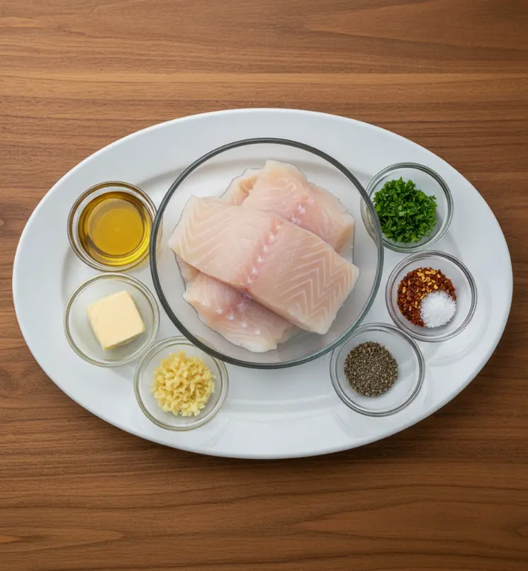 Creating the perfect Garlic Butter Cod starts with fresh, quality ingredients that bring out the natural sweetness of the flaky cod fillet. This recipe serves two and uses simple pantry staples, making it ideal for those exploring cod recipes on a budget. Here’s what you’ll need: