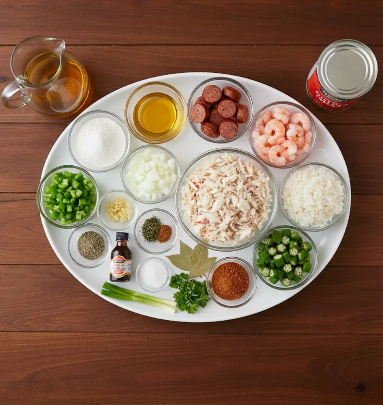 • 1 lb crab meat (lump or claw): Adds sweet, flaky luxury; canned crab is a budget-friendly sub, maintaining the seafood gumbo’s richness.