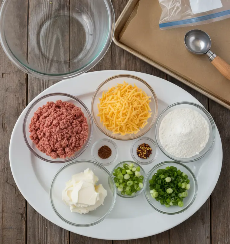 - 3 cups Bisquick mix: Or a homemade baking mix (whisk together 3 cups flour, 1 tbsp baking powder, 1 tsp salt, and ½ cup shortening). This pantry staple gives Sausage Balls their fluffy, biscuit-like base without the hassle.