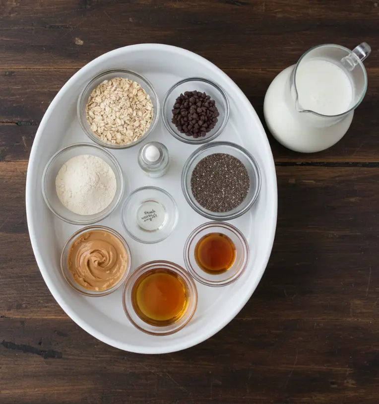 Diving into this Cookie Dough Overnight Oats Recipe starts with gathering simple, wholesome ingredients that evoke the irresistible chewiness of fresh-baked cookies. I’ve curated this list with sensory appeal in mind—think the nutty aroma of almond butter mingling with the sweet pop of chocolate chips. For substitutions, I’ve included options to personalize for dietary needs, like gluten-free swaps or nut-free alternatives, ensuring this easy overnight oats recipe fits everyone from vegan overnight oats lovers to those watching calories.