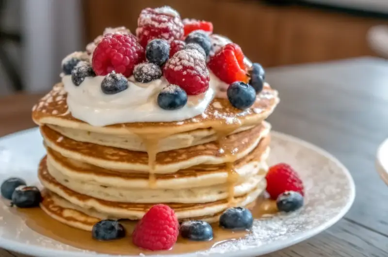Use almond milk instead of water for a dairy-free twist. For vegan pancakes, substitute yogurt with coconut yogurt. Store leftovers refrigerated up to 4 days or freeze up to 3 months.