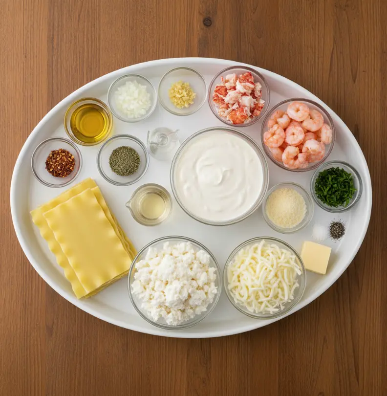 Creating this Seafood Lasagna with Lobster and Shrimp starts with fresh, high-quality ingredients that evoke the briny freshness of the sea and the creamy comfort of Italian cuisine. Imagine the aroma of garlic and herbs mingling with succulent seafood—it’s a sensory delight! Here’s a clear list, with portions for 6-8 servings, plus substitution ideas to personalize it for your pantry or dietary needs.