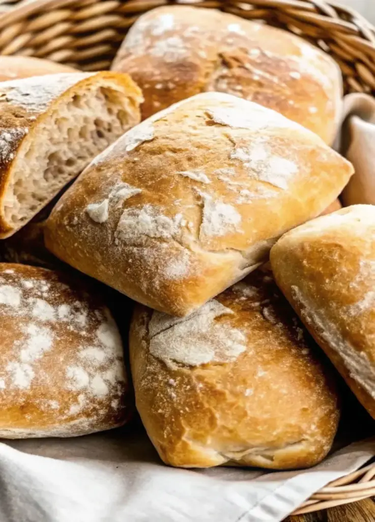 Preheat your oven to 450°F (230°C) with a shallow tray of water on the lowest rack to create steam (mimicking professional ovens for that crispy exterior). Bake the rolls for 15–20 minutes until golden brown and hollow-sounding when tapped. Cool on a wire rack for 10 minutes to let flavors set. Tip: For sourdough ciabatta bread recipe fans, score the tops lightly before baking for artistic patterns.