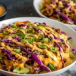 To make this Egg Roll in a Bowl with Creamy Chili Sauce even better for your wellness goals, try these swaps while keeping the flavor intact. For a healthier twist, use ground turkey instead of pork to cut fat by 30% (per USDA comparisons), or go vegetarian with crumbled tofu for an egg roll in a bowl healthy version. Swap mayonnaise for Greek yogurt in the creamy sriracha sauce to boost protein and reduce calories—perfect for easy healthy meals. If you’re keto, skip the honey and use a sugar-free sweetener. Creative idea: Add bell peppers or broccoli for extra veggies, turning it into an egg roll in a bowl with coleslaw that’s loaded with antioxidants. These adaptations suit gluten-free, vegan, or low-sodium needs without sacrificing the garlic ginger bowl essence.
