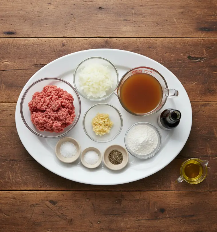 Creating the perfect hamburger steak starts with quality ingredients that blend simplicity and depth of flavor. This recipe serves four and uses everyday pantry staples, but I’ve included substitutions to personalize it for your needs—whether you’re going gluten-free or adding a veggie boost.