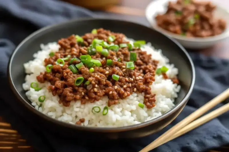 This Korean Ground Beef Bowl is a quick, flavorful weeknight meal made with juicy ground beef, garlic, ginger, and soy sauce, served over warm rice for an easy, budget-friendly Asian-inspired dish.
