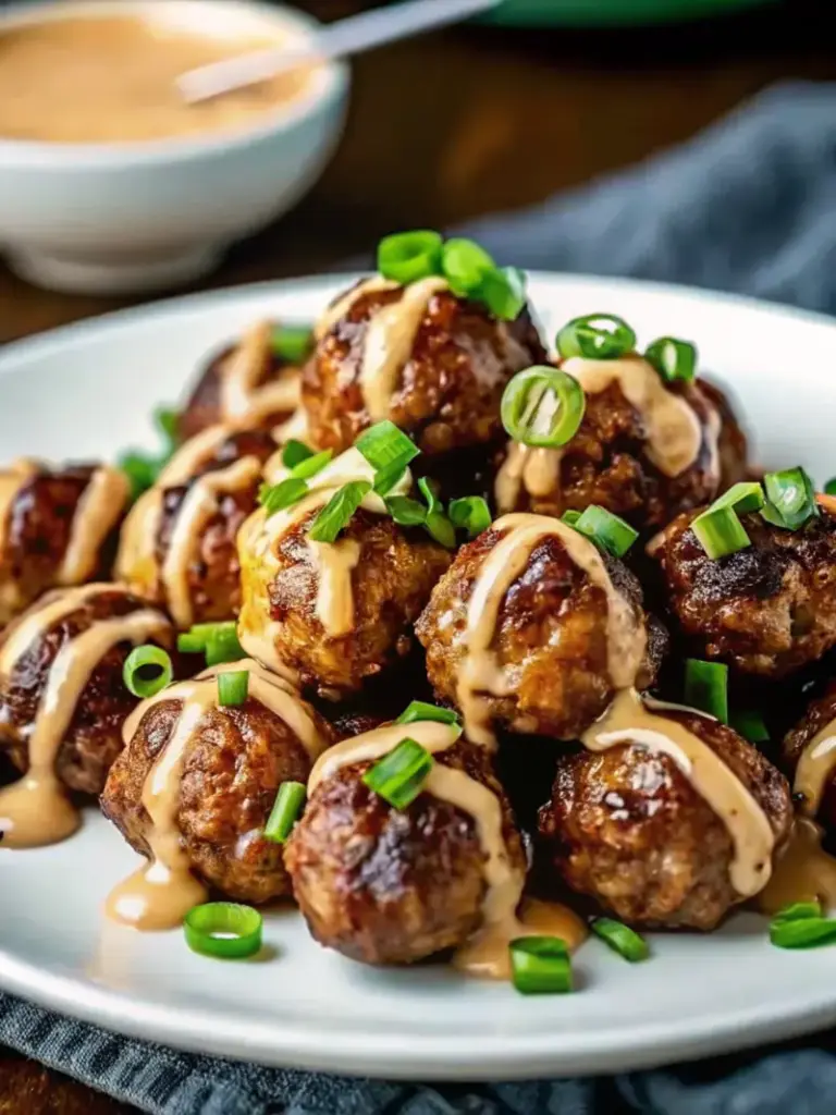 Toss baked meatballs in the glaze for even coating. In a bowl, whisk mayonnaise, sriracha, and lime juice for the spicy mayo dip. Serve hot, garnished with scallions or sesame seeds. Tip: For party personalization, set up a DIY station with extra dip variations.