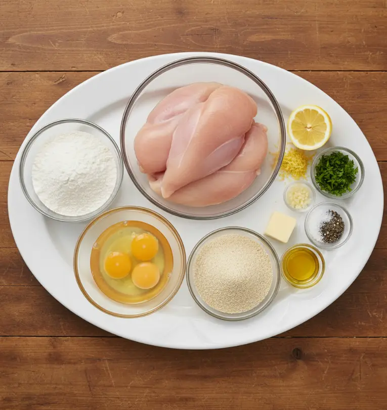 Creating Zesty Lemon Pecorino Crispy Chicken starts with fresh, high-quality ingredients that tantalize the senses—imagine the sharp citrus aroma mingling with the salty bite of cheese. This recipe serves 2-4 people and uses simple pantry staples for that perfect crispy breadcrumb coating. Here’s what you’ll need: