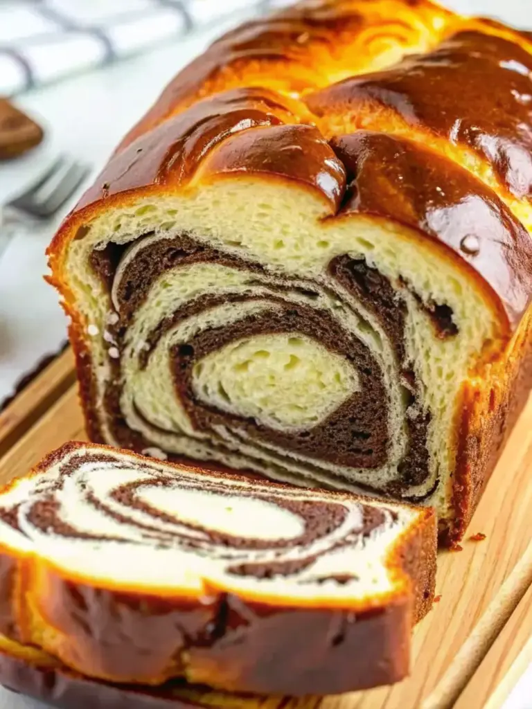 A soft, fluffy, bakery-style Chocolate Marble Bread swirled with rich chocolate and vanilla dough, perfect for breakfast, brunch, or a cozy homemade treat.